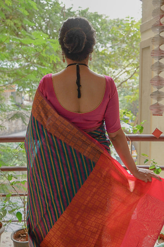 Banarasi Multicoloured Handwoven Cotton Saree