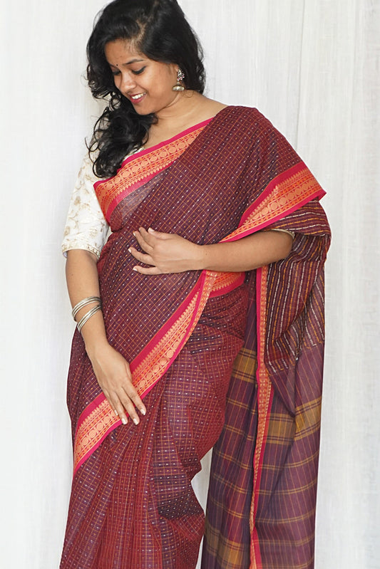 Chettinad Cotton Checks And Butta Maroon Red Saree