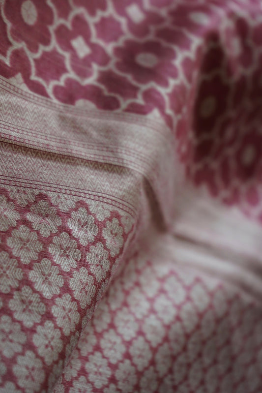 Chettinad Cotton Checks And Dots Pink Maroon Saree