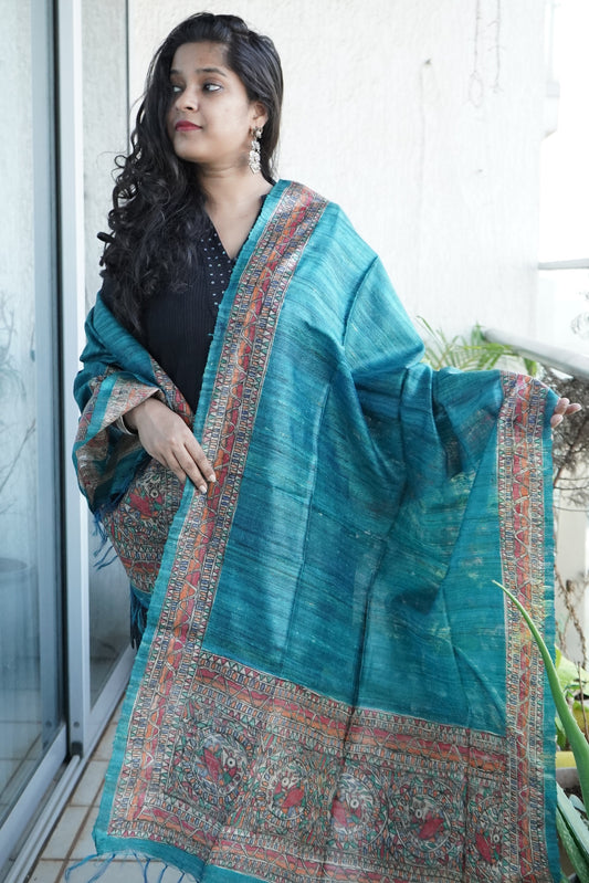 Hand Painted Madhubani Tussar Silk Dupatta