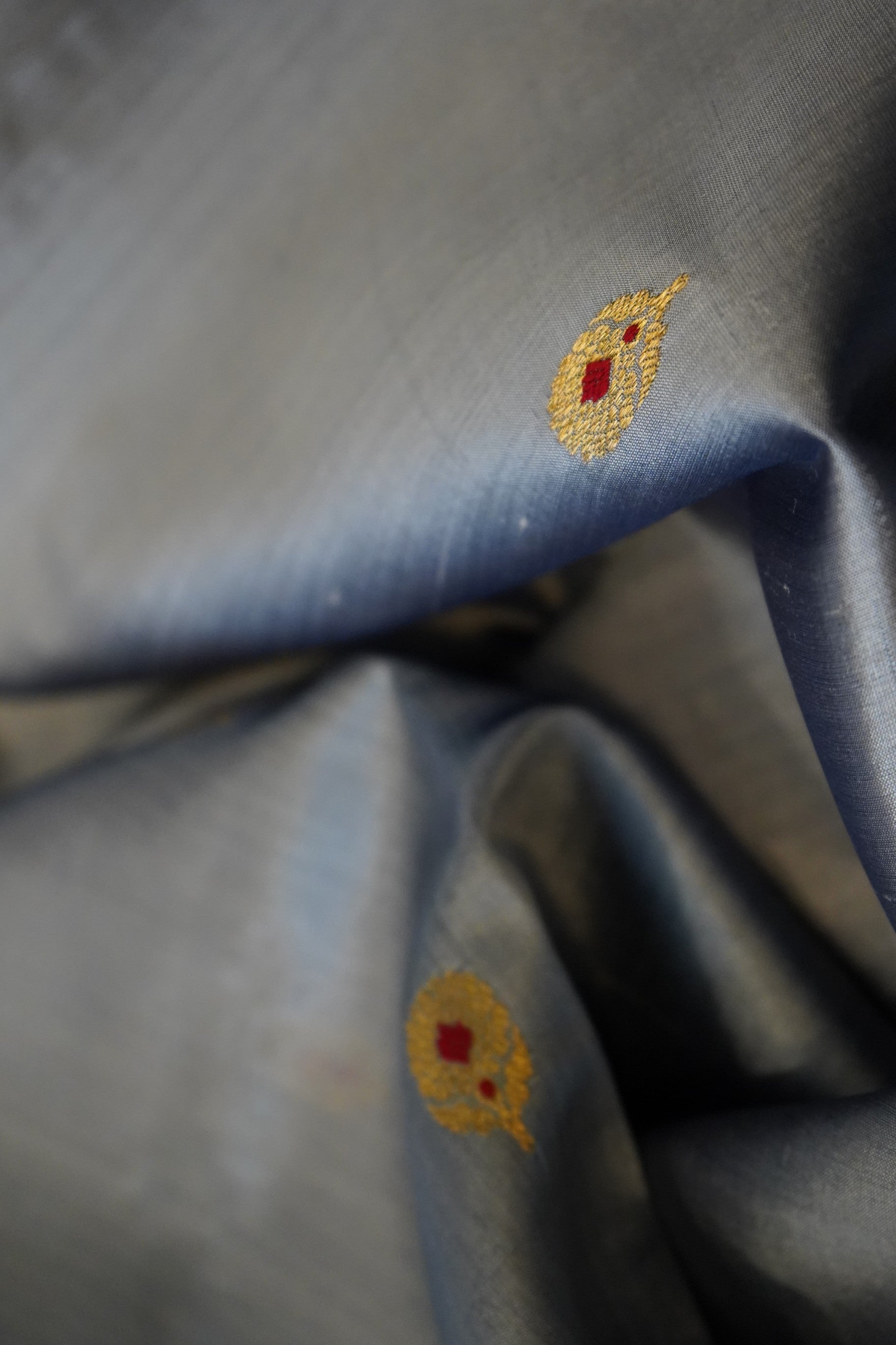 Grey Blue Pure Pattu Silk Chanderi Saree