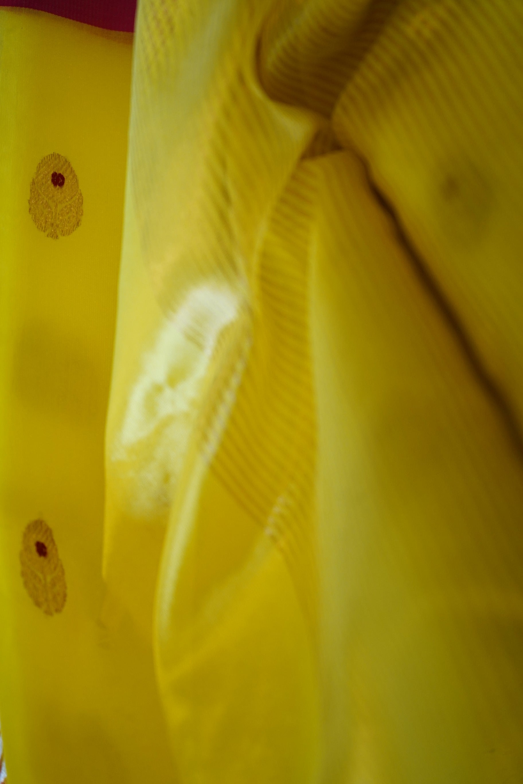 Yellow Pink Pure Pattu Silk Chanderi Saree